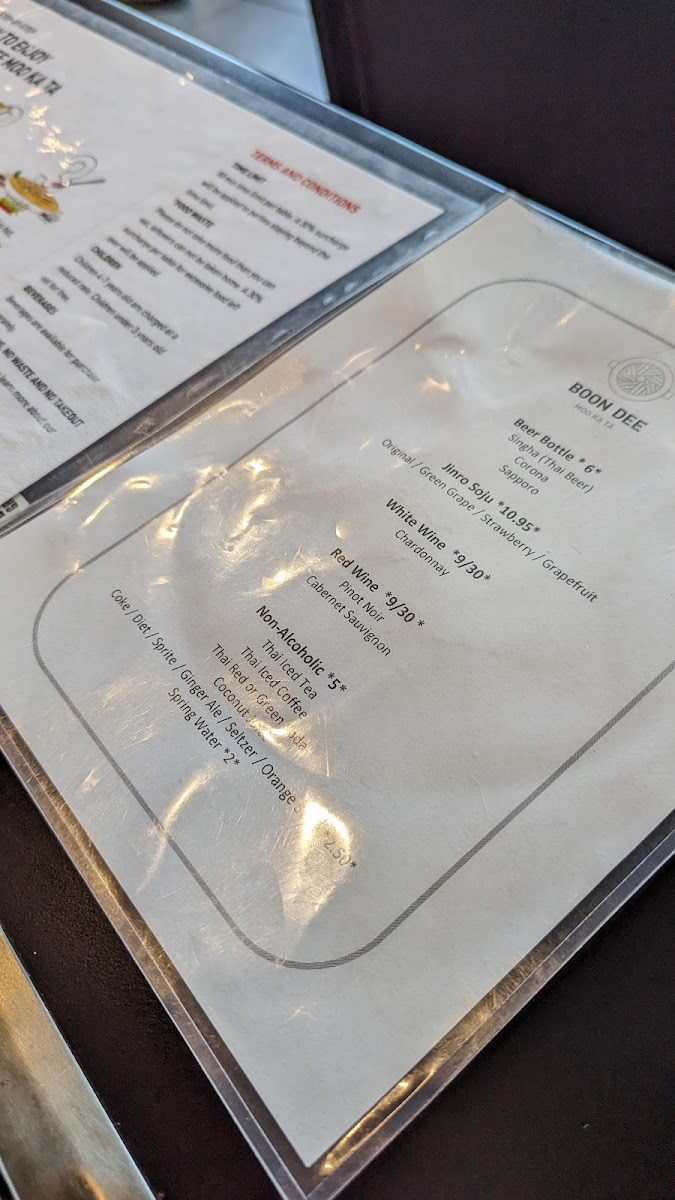 Seafood lovers are in for a treat as well! The Green Curry Seafood, which delicately blends shrimp and squid in a vibrant green curry sauce, is perfect for those seeking bold flavors and rich aromas, priced at $18.95. And if your heart desires something comforting and filling, look no further than their Boon Dee Garlic Fried Rice, which is a fan favorite for its garlic-infused deliciousness—available for $14.00.